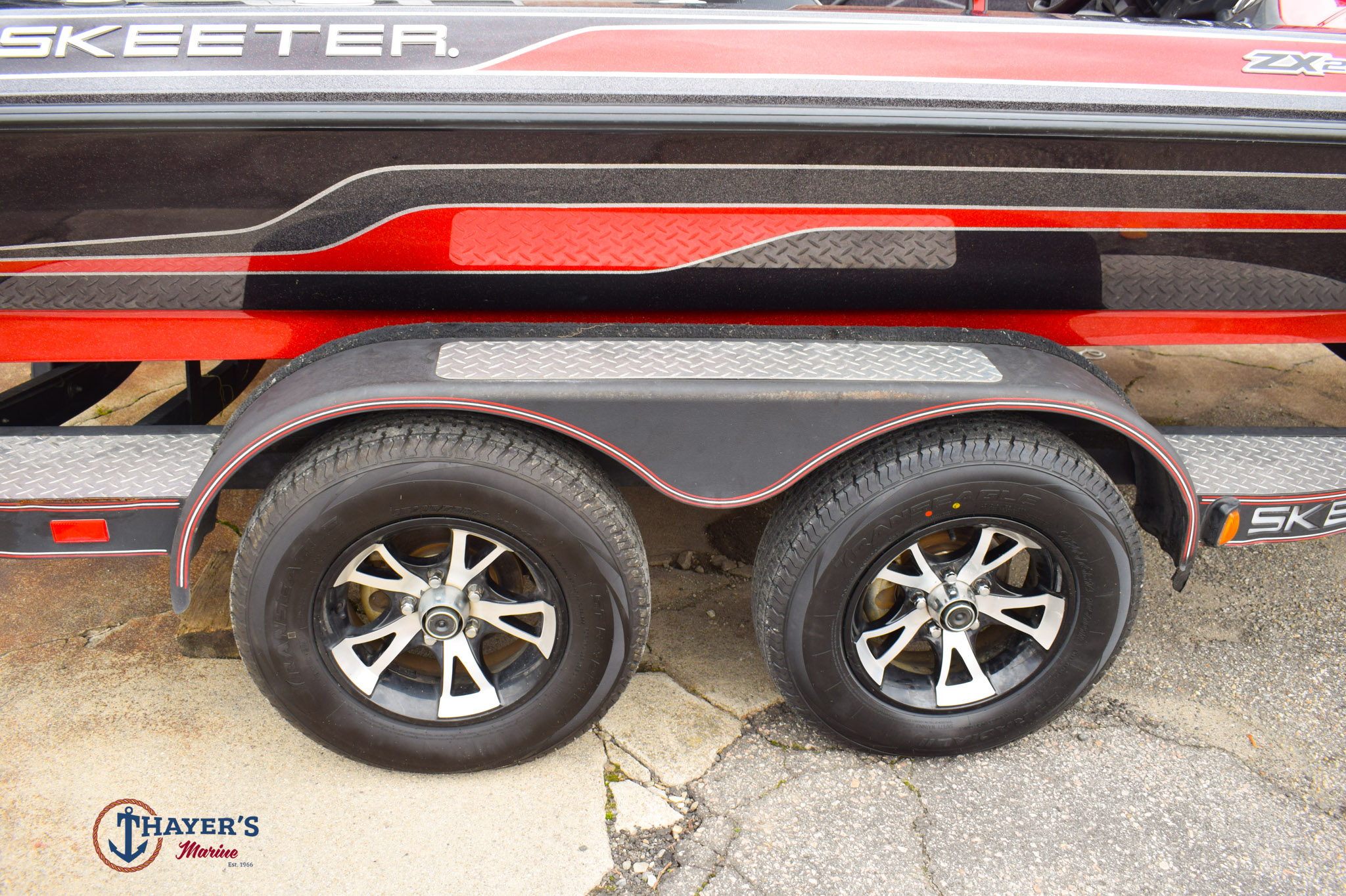 - Skeeter Built Trailer w/Tuff Coat, Channel Frame, Steel Fenders, Tandem Axle w/ Dual Disc Brakes