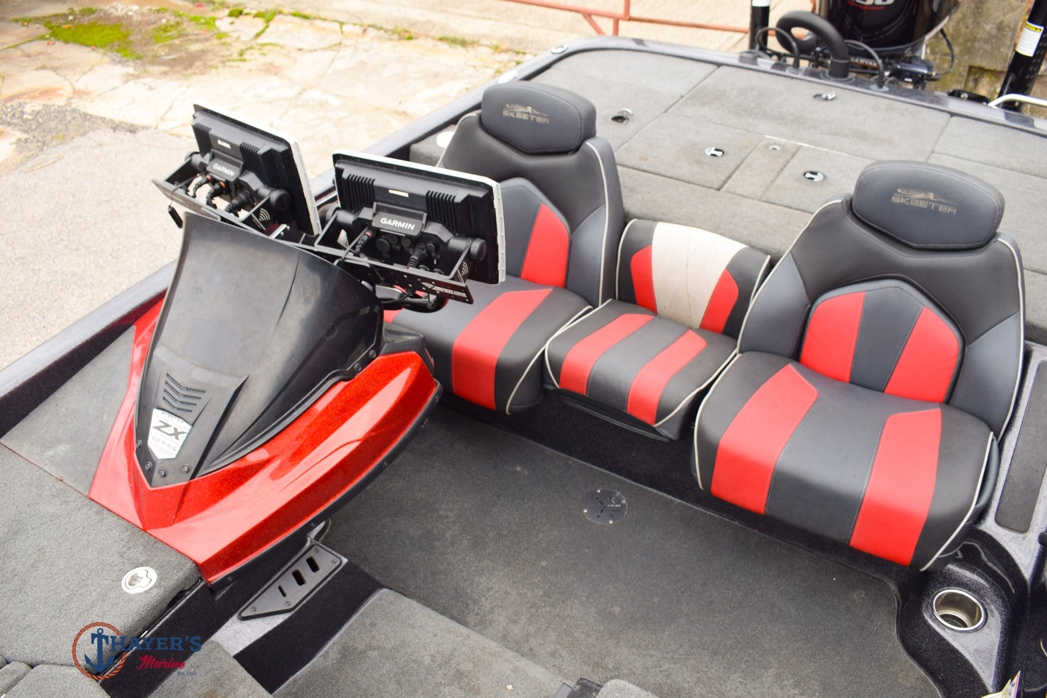 Tournament ready is an understatement. With the ZX250 & ZX225 our standards are our competitor's options. Some great components of the ZX250 and ZX225 include: Humminbird Helix electronics, 8' Pro Series II Power-Pole, Minn Kota Fortrex trolling motor, and a dual axle Tuff Coated SkeeterBuilt trailer with a swing away tongue.