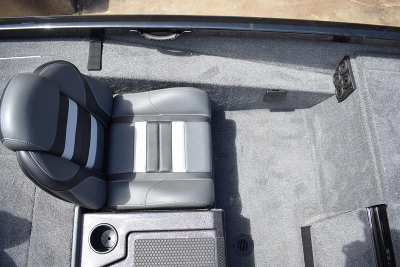 - Custom fitted marine upholstery- driver/passenger bucket seating w/ center fold down & two matching fishing seats
